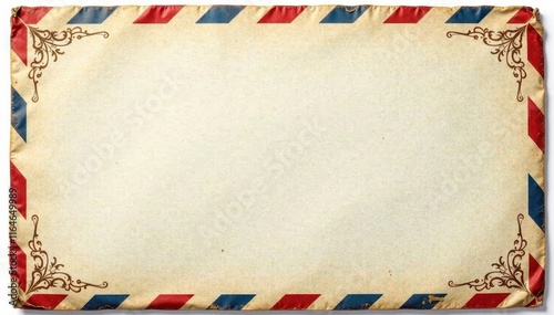 Old, retro-style envelope with ornate design and creases on white surface, layered, ornate, antique