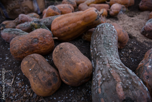 Old rotten pumpkin lying on the ground