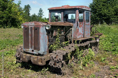 Old rusty crawler tractor