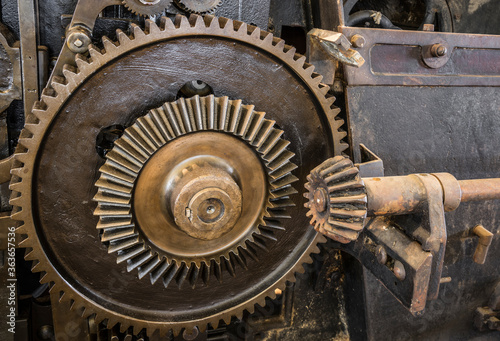old rusty gears on a textile machine