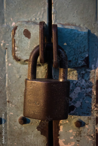 old rusty padlock on the door dirty high-resolution lock key