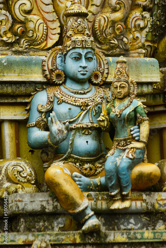 Old statue on the facade of Seetha Amman kovil hindu temple
