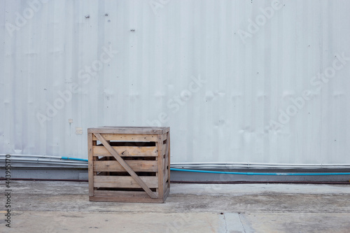 Old wooden boxes on white container background