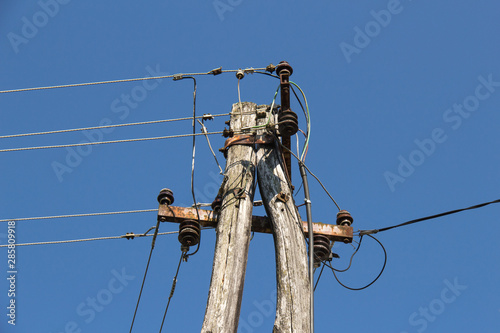 Old wooden electric pole
