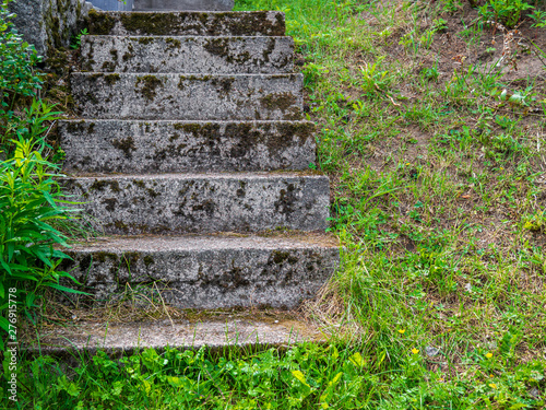 Old worn concrete stairs that nature is taking back