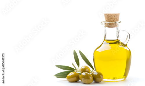 Olive branch and bottle of olive oil isolated on a white background