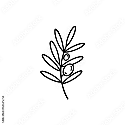 Olive branch icon with leaves and two olives, black outlines on a white background