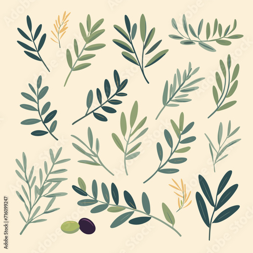 Olive branches illustration leaves set vector collection