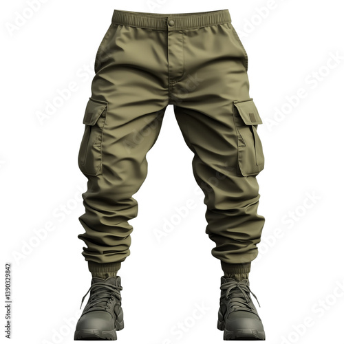 Olive Green Cargo Pants mockup with transparent white background for easy artwork customization