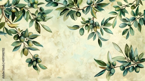 Olive Tree Branches With Green Olives