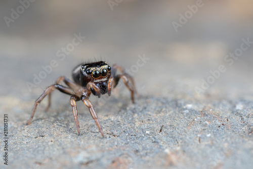 Omodeus sp. a tiny black and white striped ant-eating jumping spider