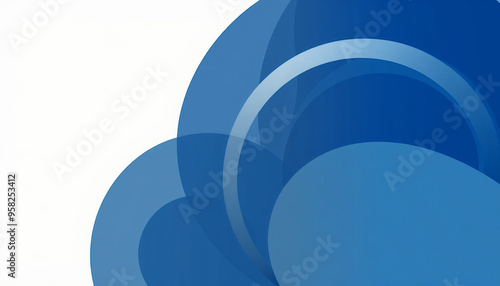 on a white background abstract circles and ellipses intertwined with each other. Color palette blue, light blue, white