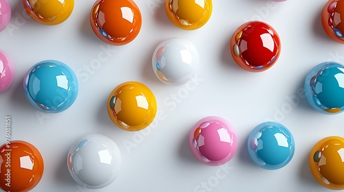 Once again, colorful glossy spheres swirl through an abstract background, creating depth.