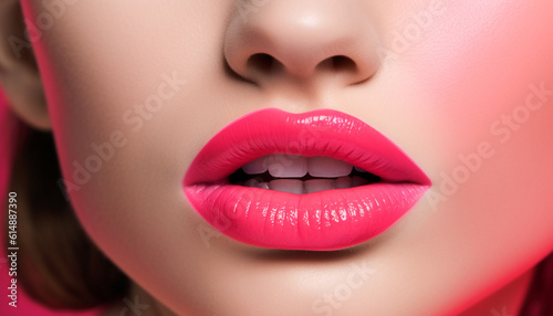 One beautiful woman with perfect makeup and multi colored hair generated by AI