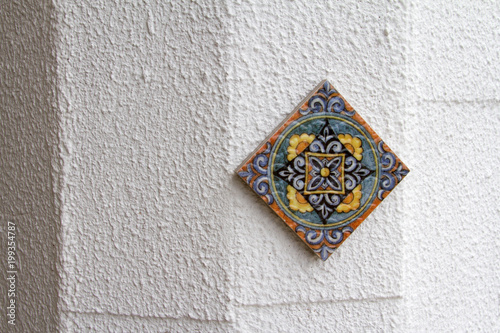One ceramic tile with oriental pattern on a white background.