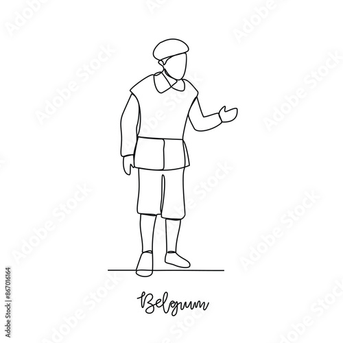One continuous line drawing of Belgium traditional clothes vector illustration. Traditional fashion country themes design with simple linear continuous line concept. Traditional fashion education