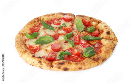 One delicious Margherita pizza isolated on white