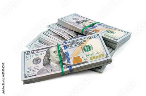 One hundred dollars banknotes isolated on white background