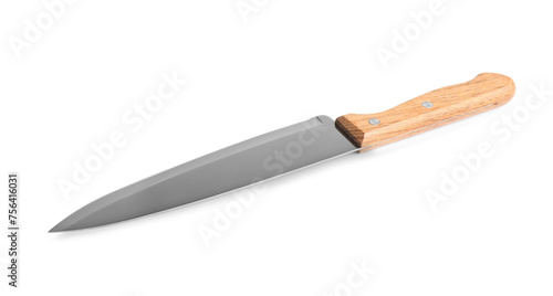 One knife with wooden handle isolated on white