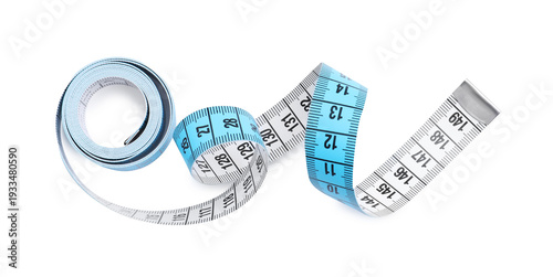 One measuring tape isolated on white, top view