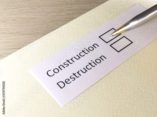 One person is answering question on a piece of paper. The person is thinking to construct or destruct.