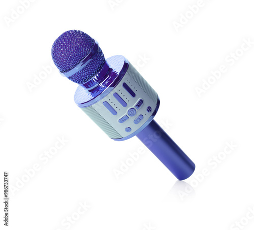 One violet blue karaoke microphone isolated on white