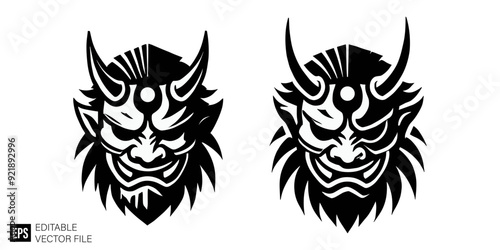 oni mask Black and White Vector Silhouette Illustrations Clip Art Graphic Design Elements