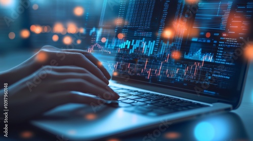 Online banking dashboard on a laptop screen, with financial details displayed