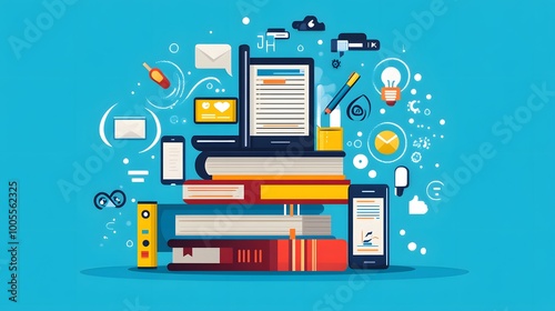 Online education, E-learning concept. stack of books. 3d render illustration.