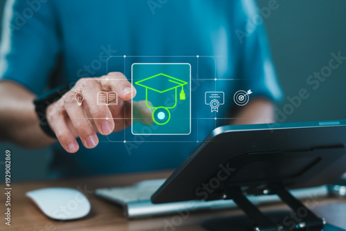 Online education interface with graduation cap icon on tablet screen