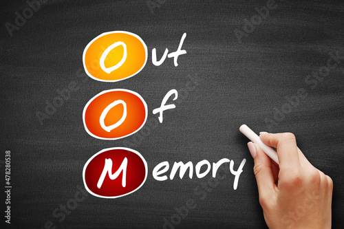 OOM - Out of Memory acronym, technology concept on blackboard