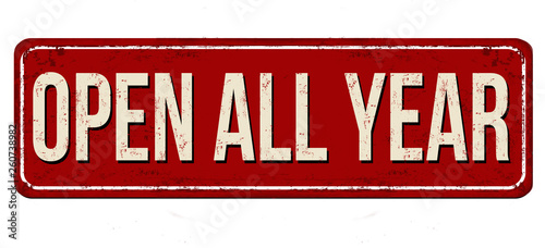 Open all year vintage rusty metal sign