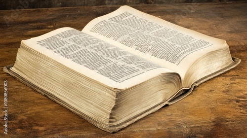 Open Antique Book on Wooden Surface