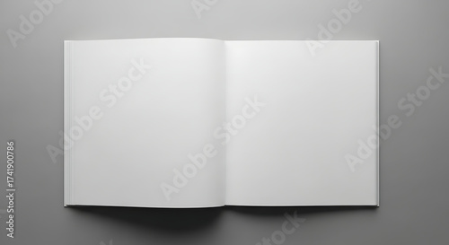 Open blank book with white pages on a gray background
