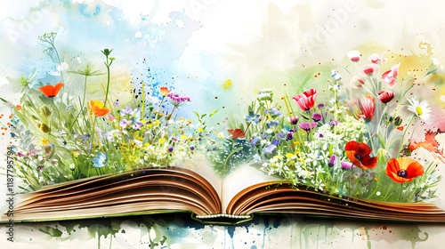 Open Book with Flowers