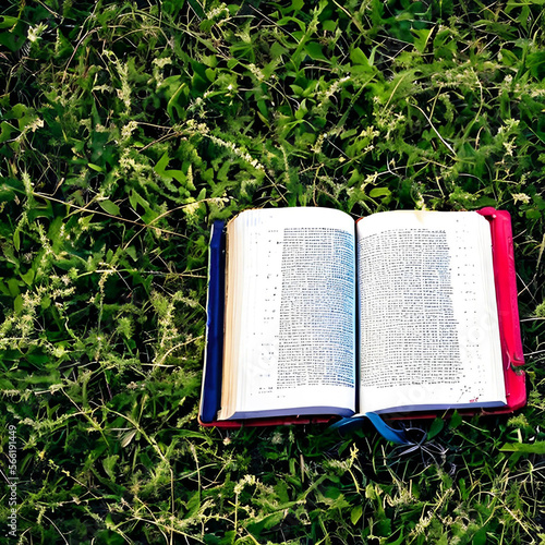 open book with green grass