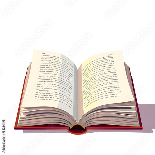Open book with visible text and colored pages on a plain background