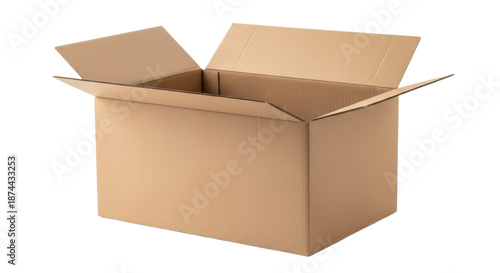 Open cardboard box with flaps raised isolated