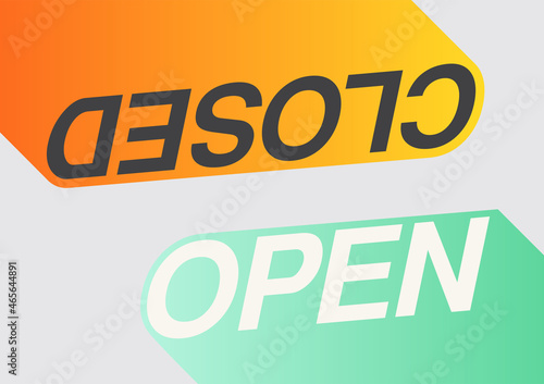 Open closed door sign. Two in one. Typography modern web style poster. Vector illustration.