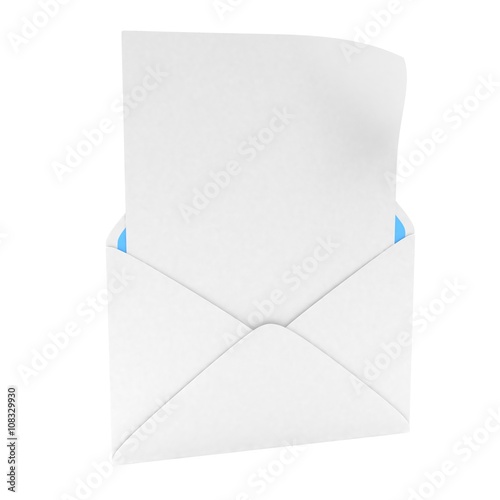 open mail with white blank. 3d rendering.