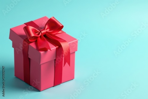 Open red gift box with red bow, pastel blue background Valentine's/birthday gift , background, anniversary, copy space