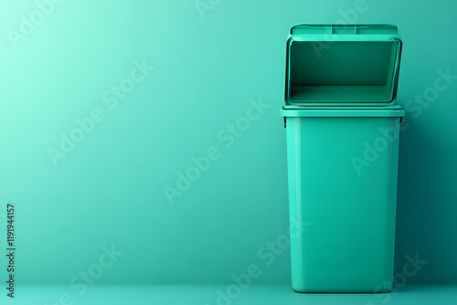 Open Teal Recycling Bin against Green Wall