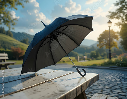 Open Umbrella on Picnic Table in Park on Sunny Day