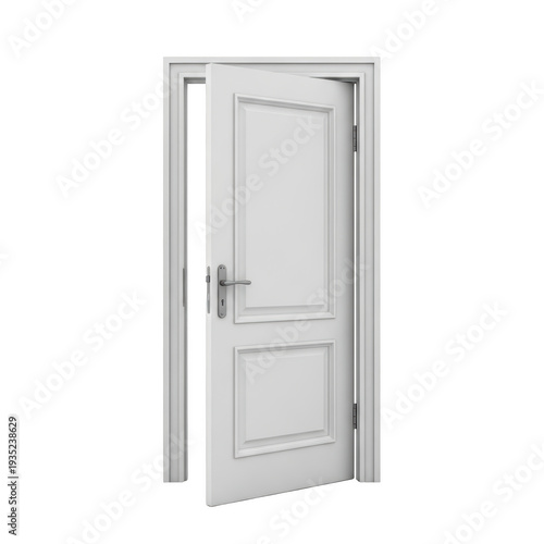 Open white interior door isolated on transparent background