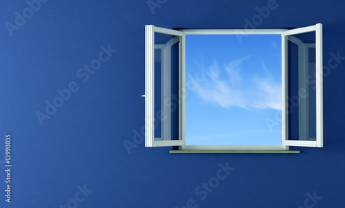 open windows and blue wall