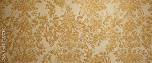 Opulent gold & cream damask wallpaper, intricate texture , classic, floral, vintage design