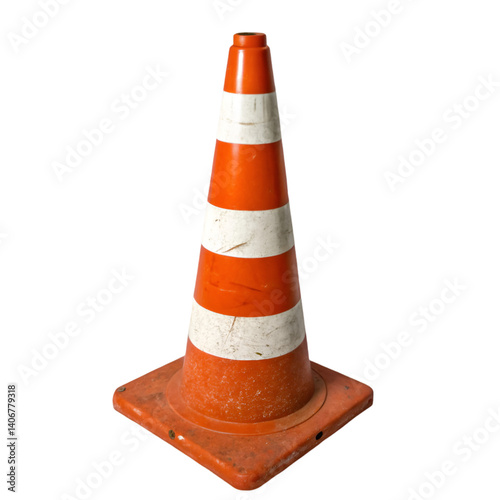 Orange and white traffic cone isolated on transparent background