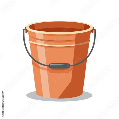Orange bucket with handle filled with water for cleaning and gardening