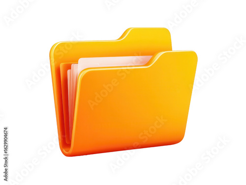 Orange Digital Folder Icon 3D Rendering Documents Inside Isolated Transparent Background