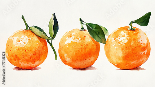 Orange Fruit Watercolor Set. Fresh summer fruit, citrus mandarin fruit, orange fruit slice isolated on white background.
